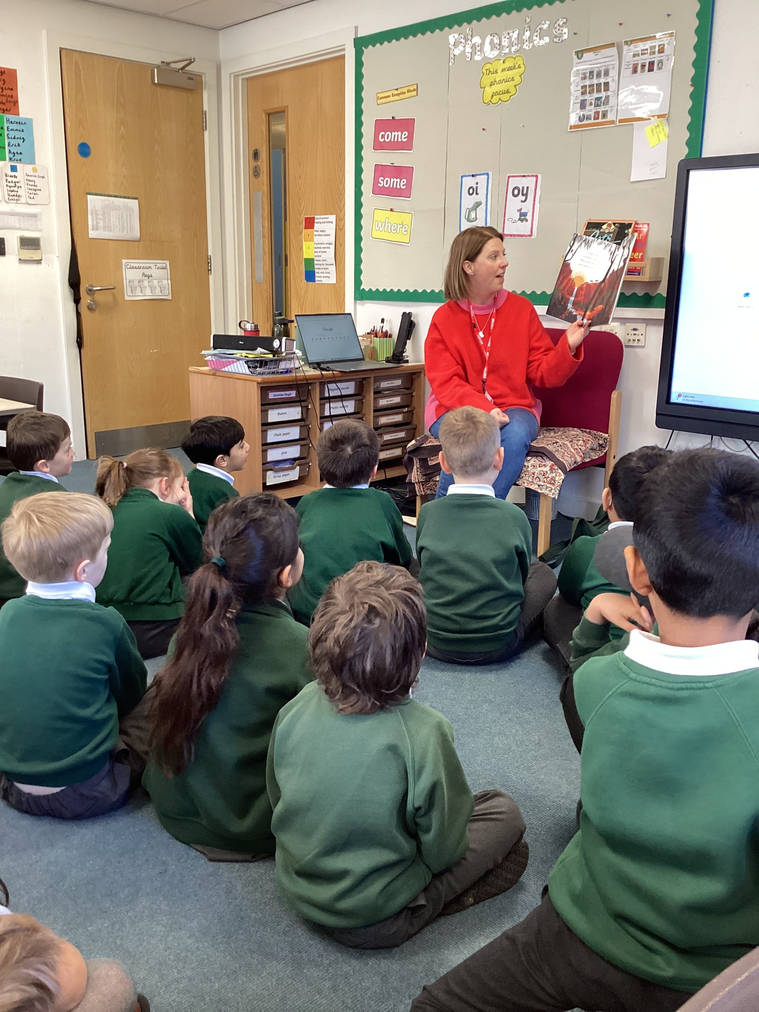 1B were very lucky today to have Jasmine's mum and little sister as our "Secret Readers". They ...