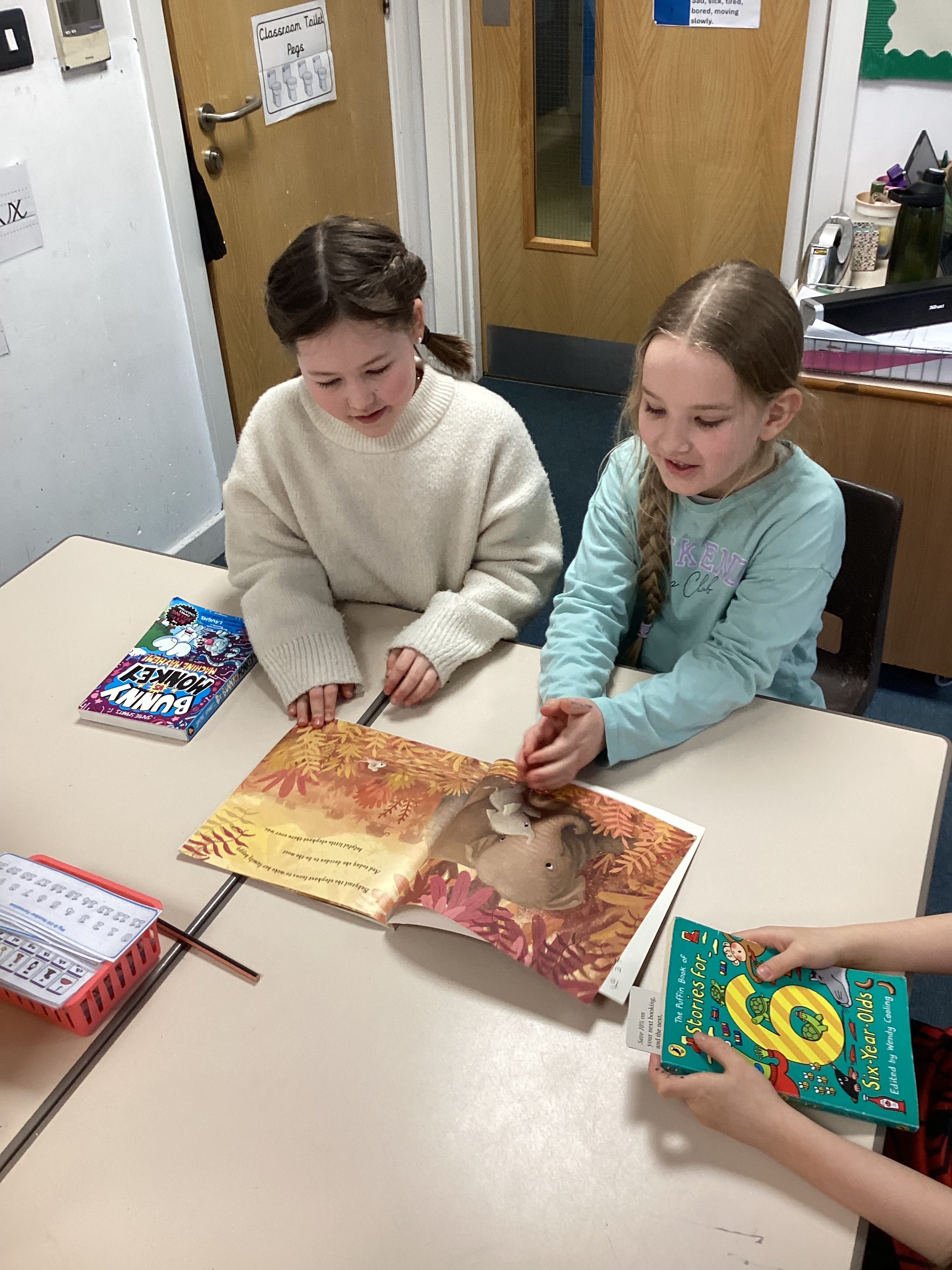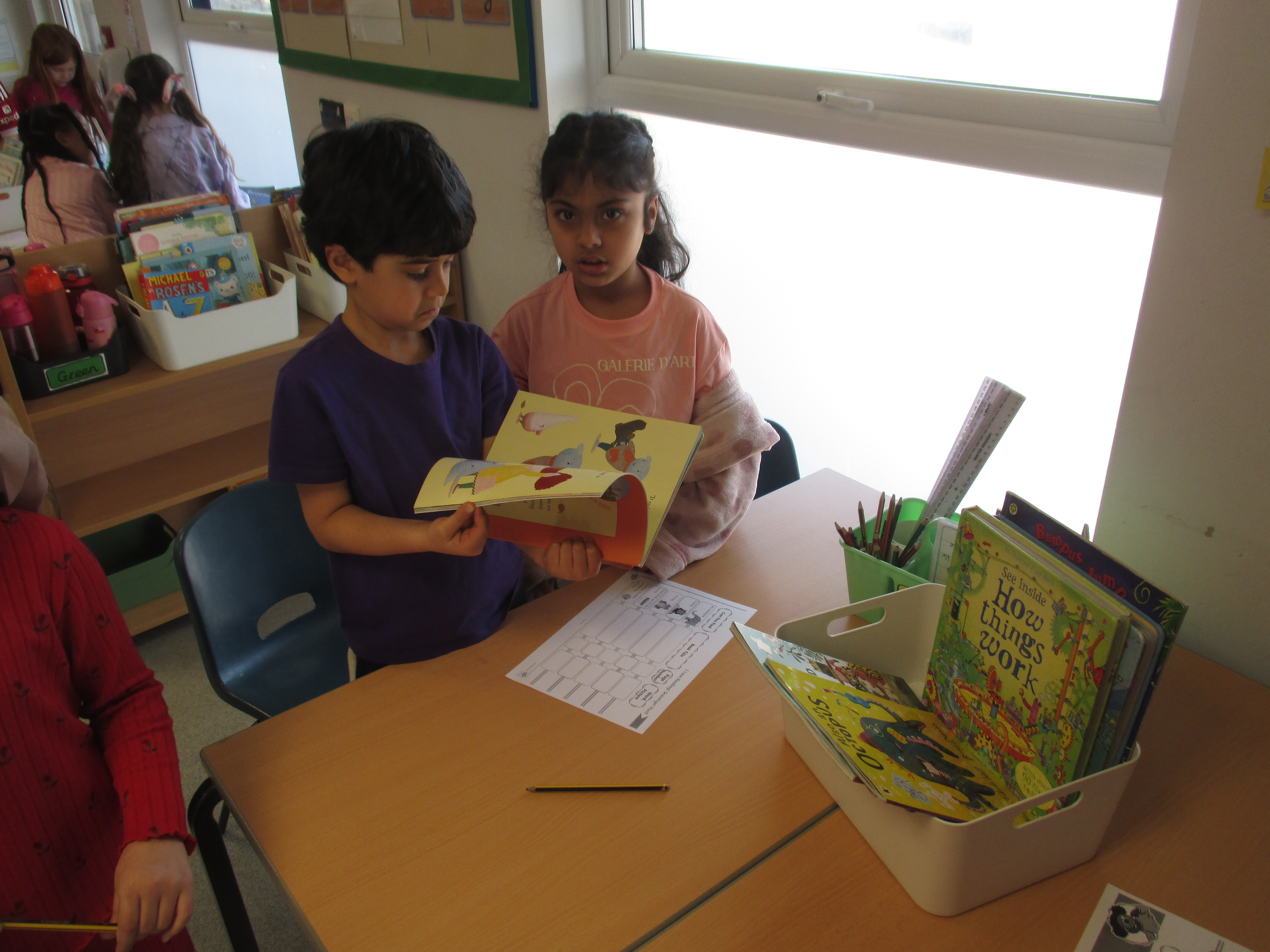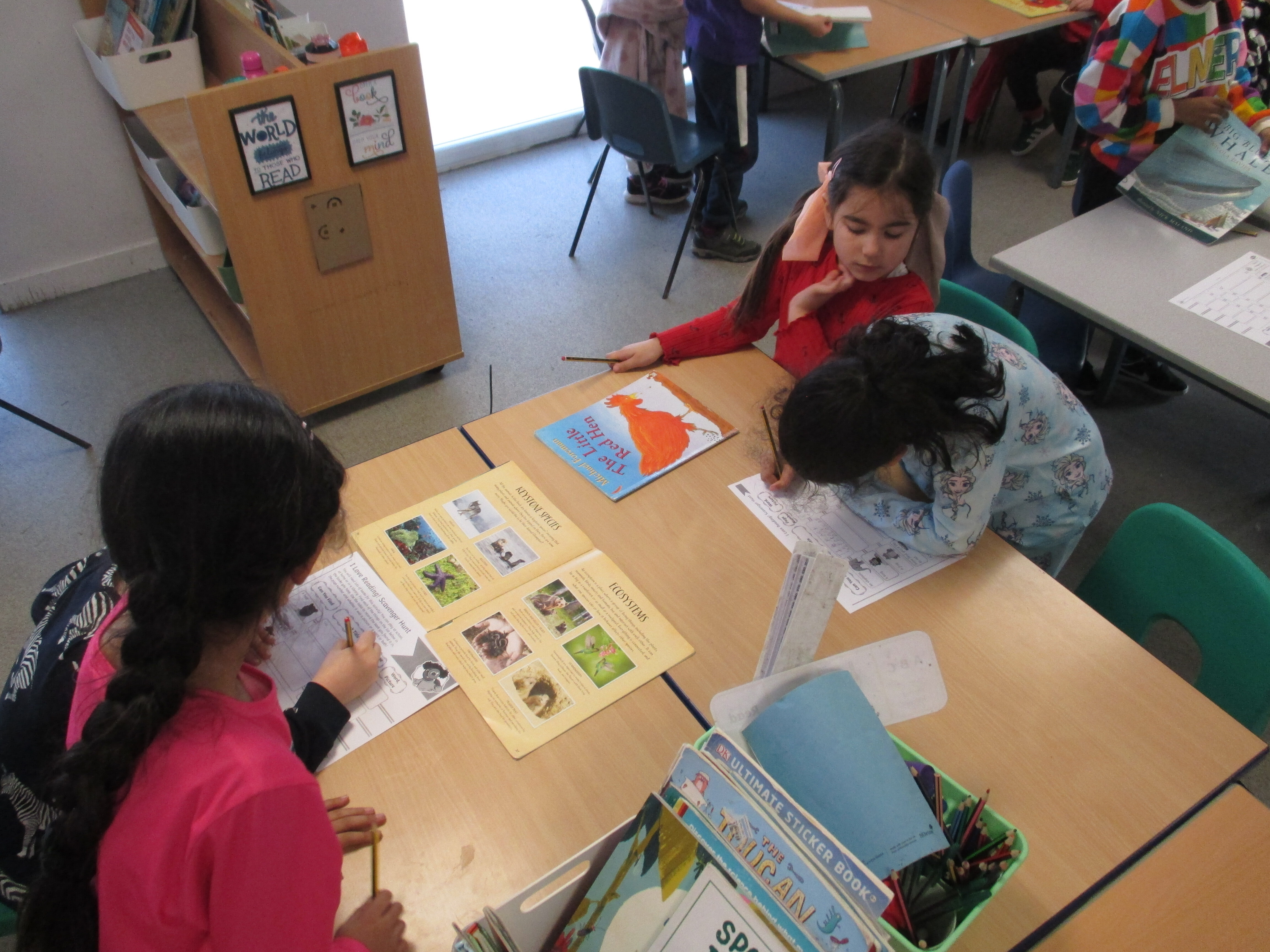 2F were busy looking though lots of different books on a scavenger hunt in class today.
