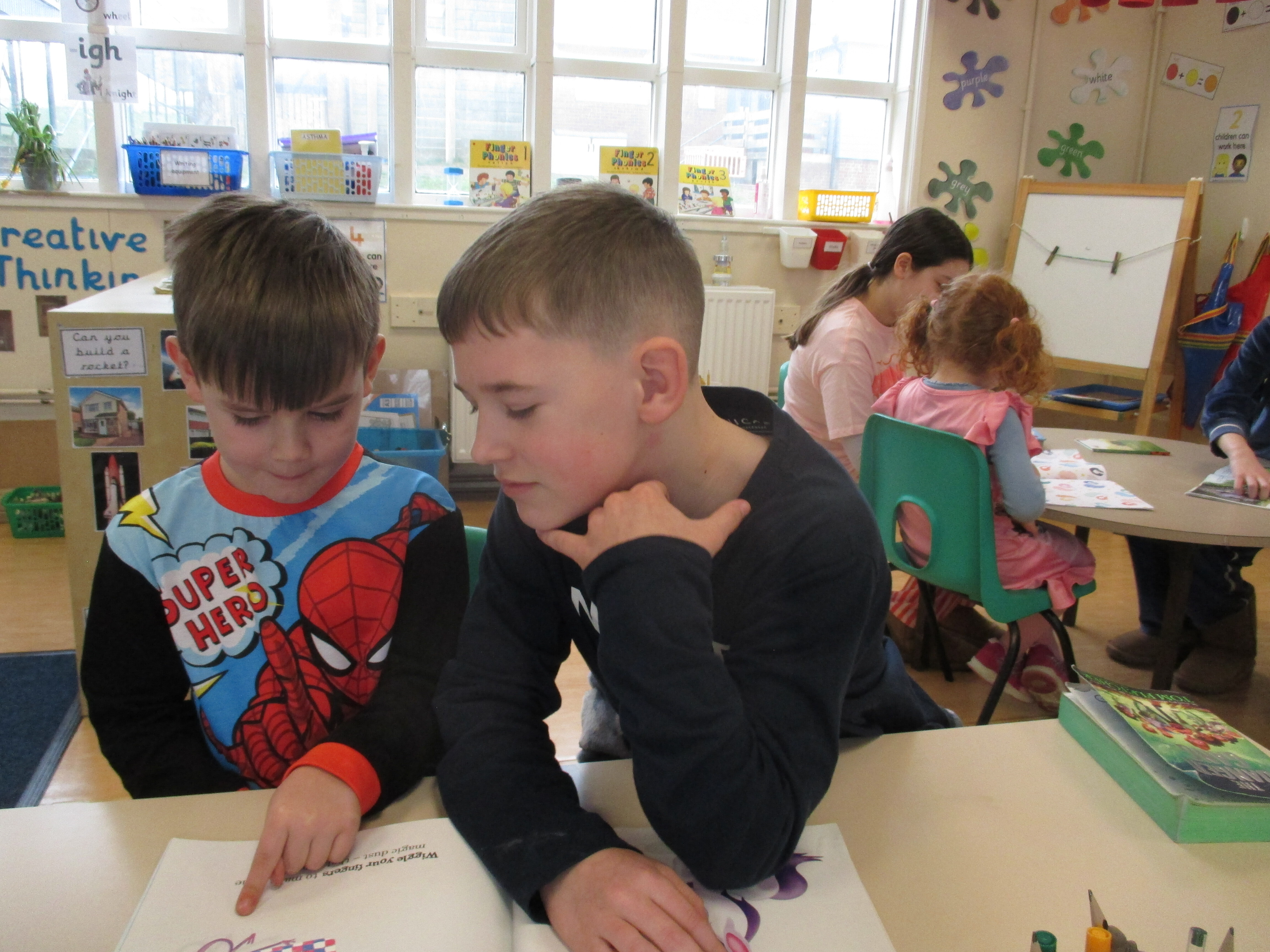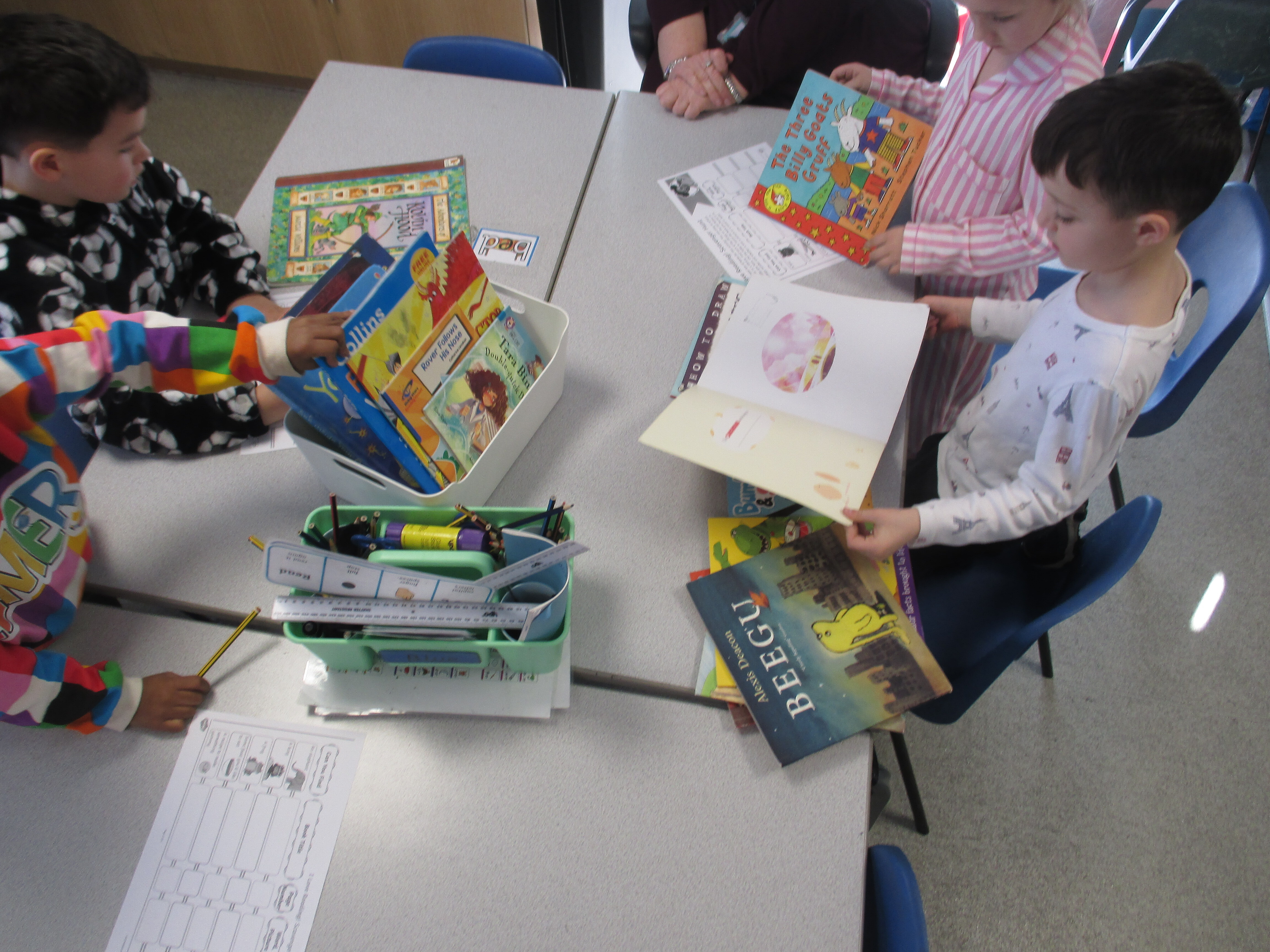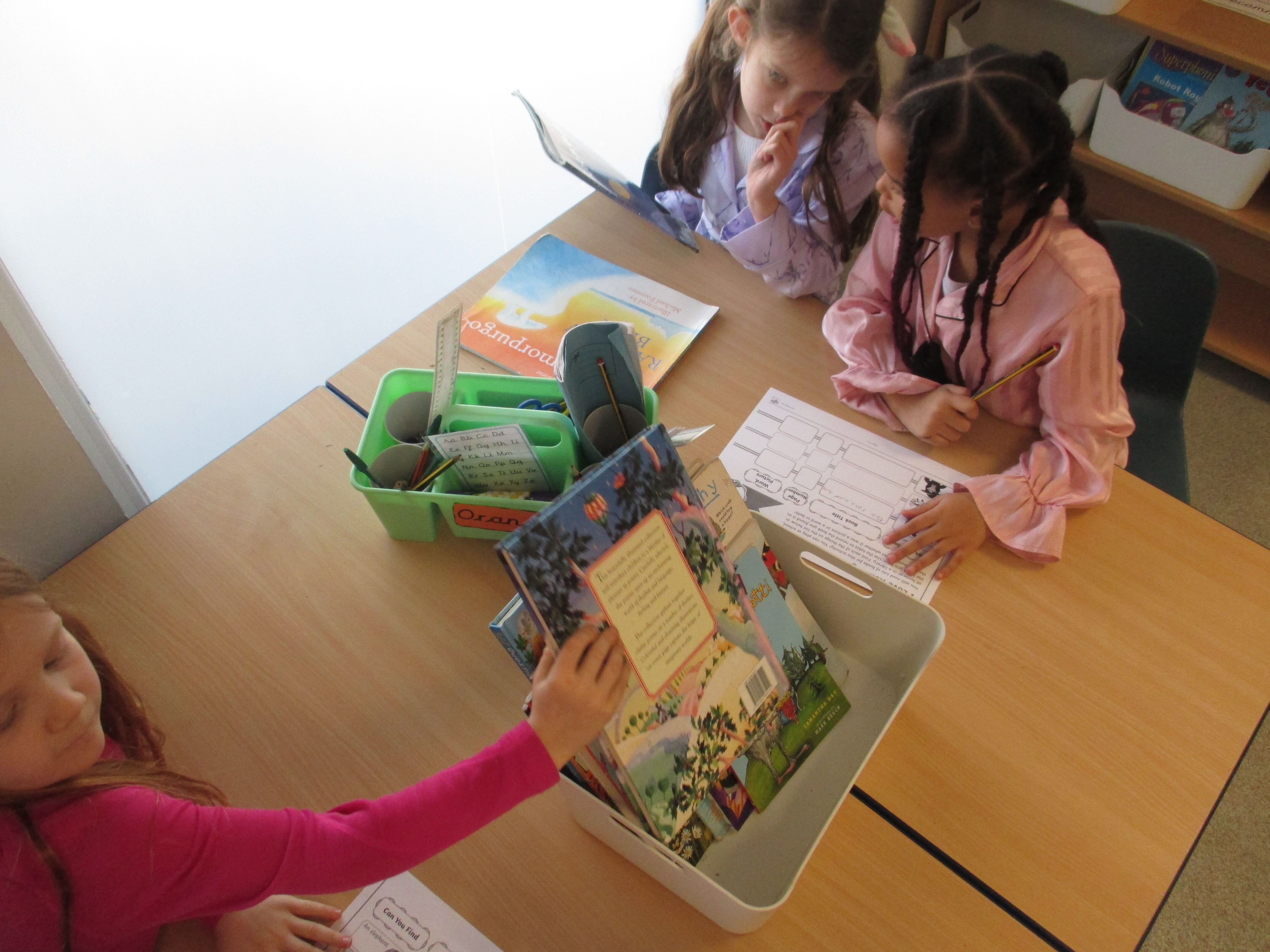 2F were busy looking though lots of different books on a scavenger hunt in class today.