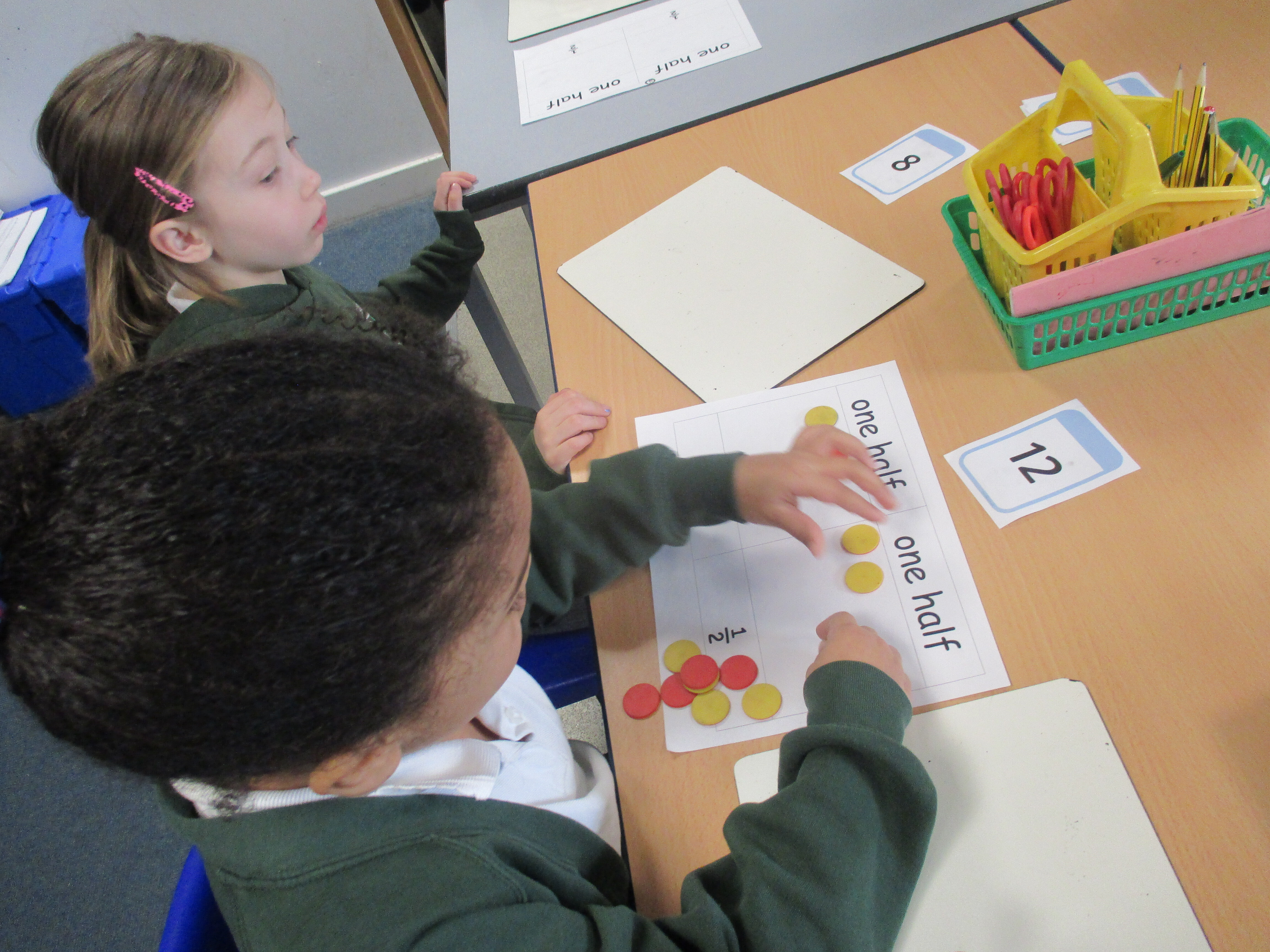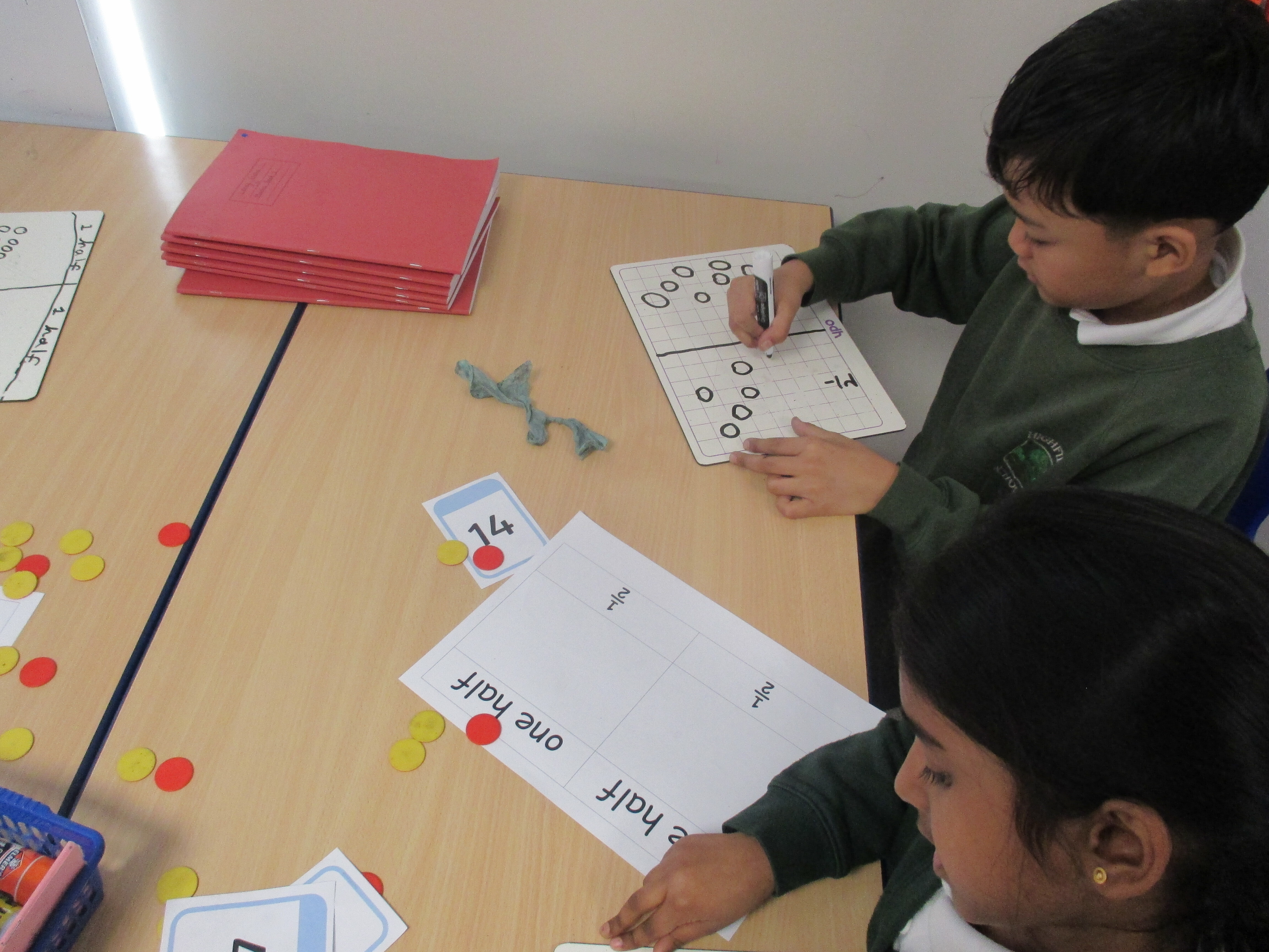 2H have been exploring halves and quarters. We used practical resources to find halves of even numbers.