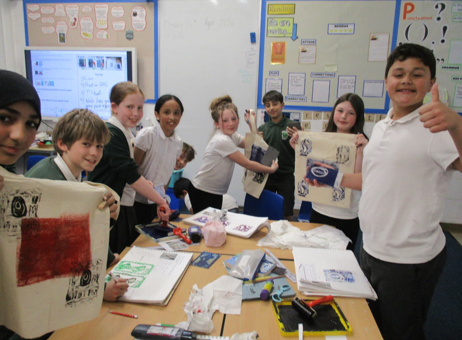 6G had a great afternoon printing our Hepworth inspired relief prints into some highly fashionable tote bags. ...