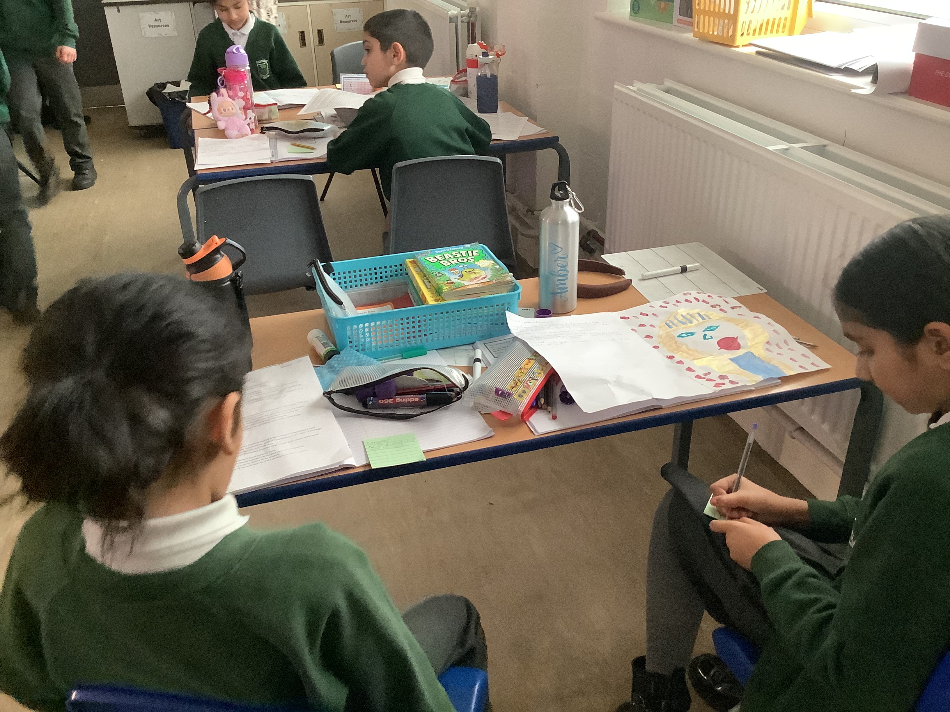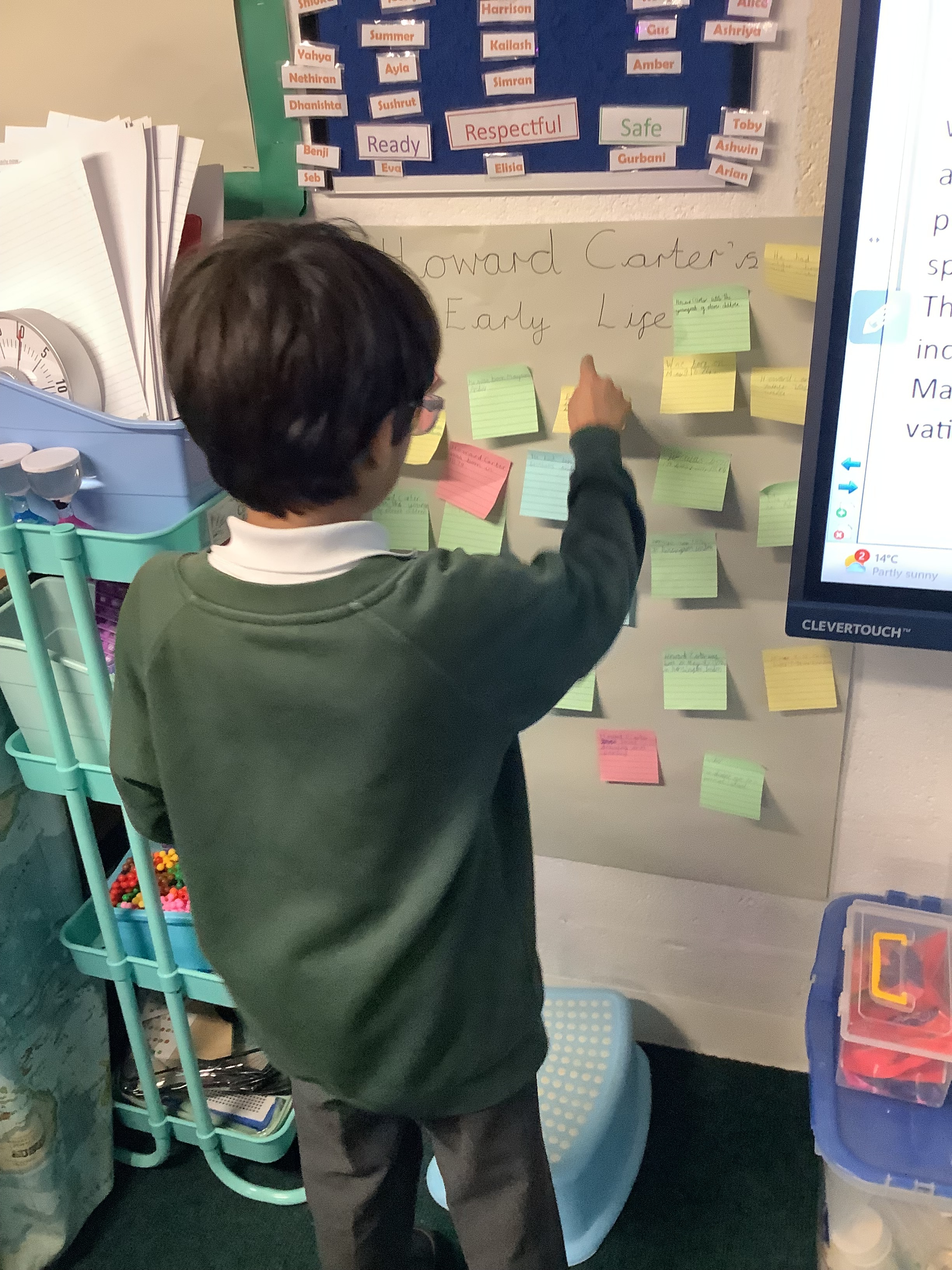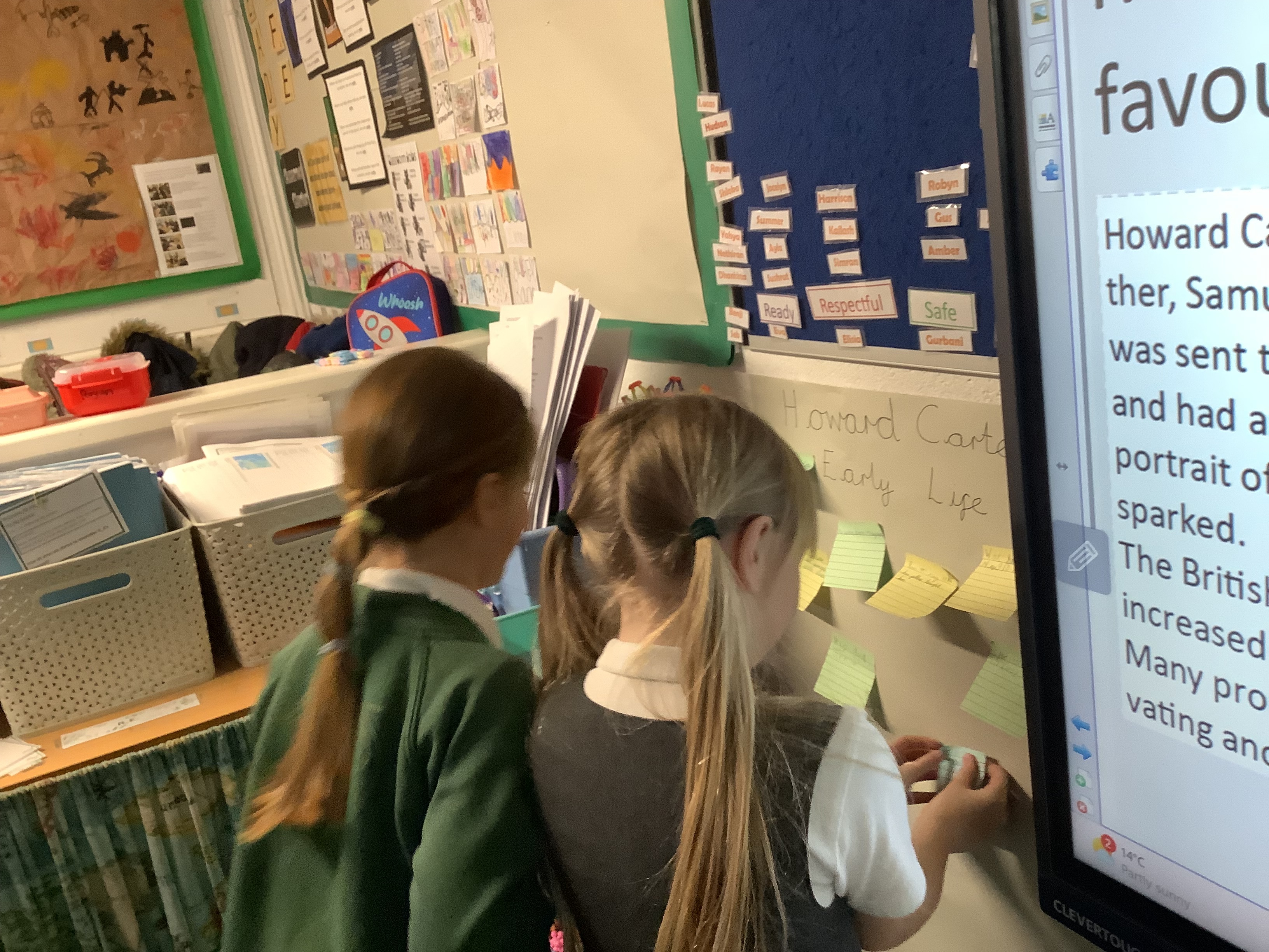 In English, 3T were learning how to use subheadings. We found out facts about Howard Carter, wrote ...