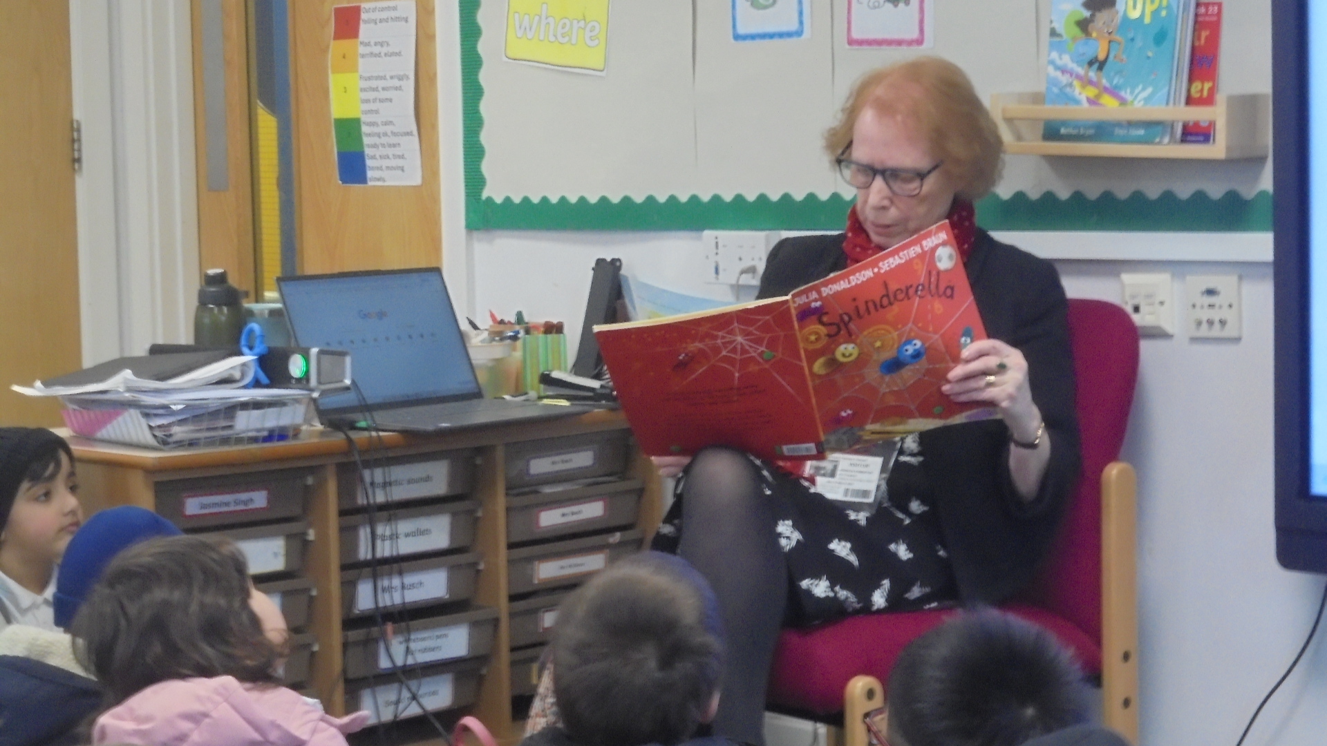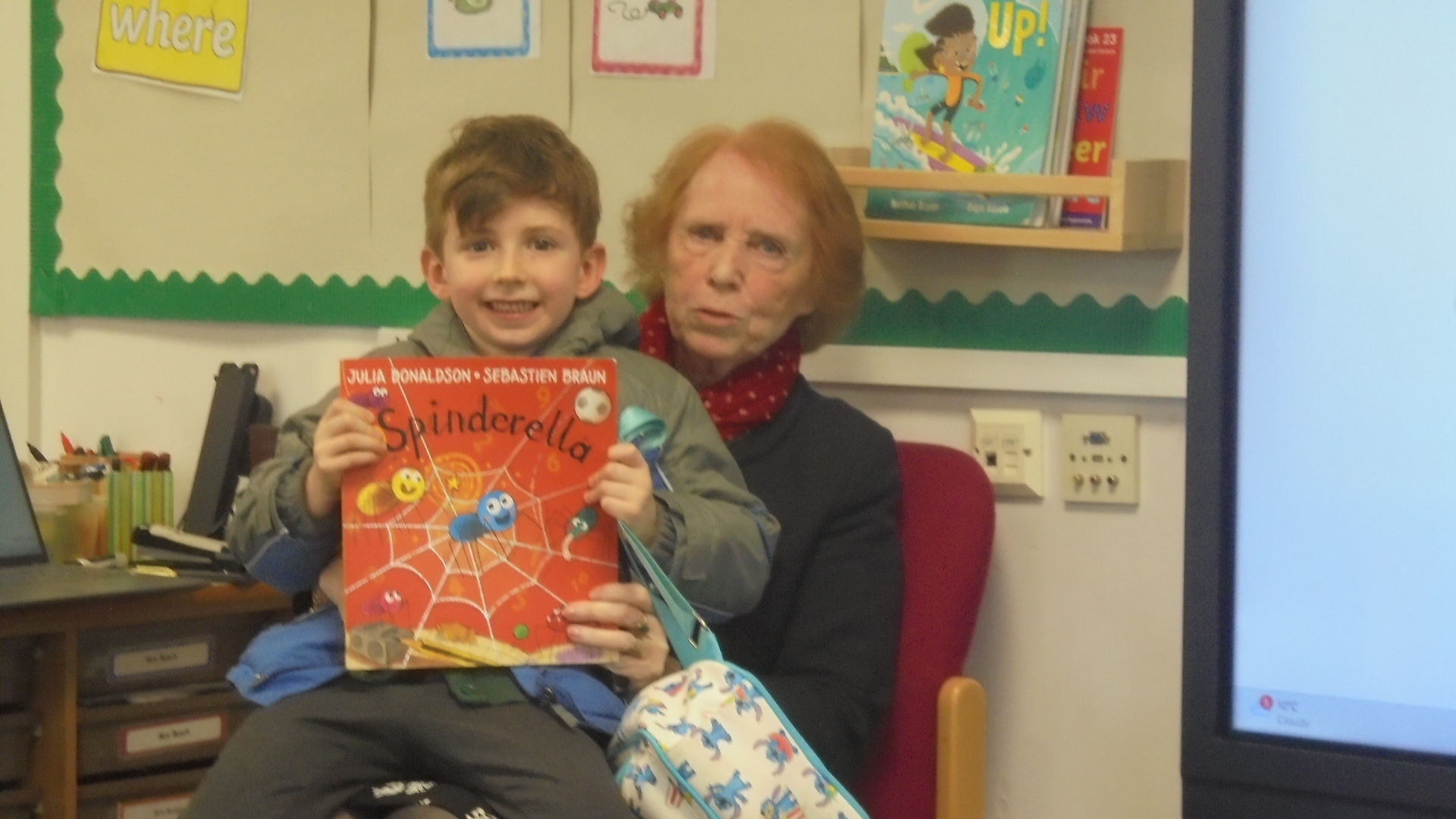 1B enjoyed another Secret Reader this afternoon. George's grandma read Spinderella. We all really enjoyed this story!